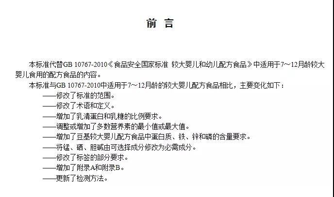 《食品安全國家標(biāo)準(zhǔn) 較大嬰兒配方食品》中明確提到,本標(biāo)準(zhǔn)適用于7~12月齡較大嬰兒食用的配方食品的內(nèi)容。其中,將錳、硒、膽堿由可選擇成分修改為必需成分。